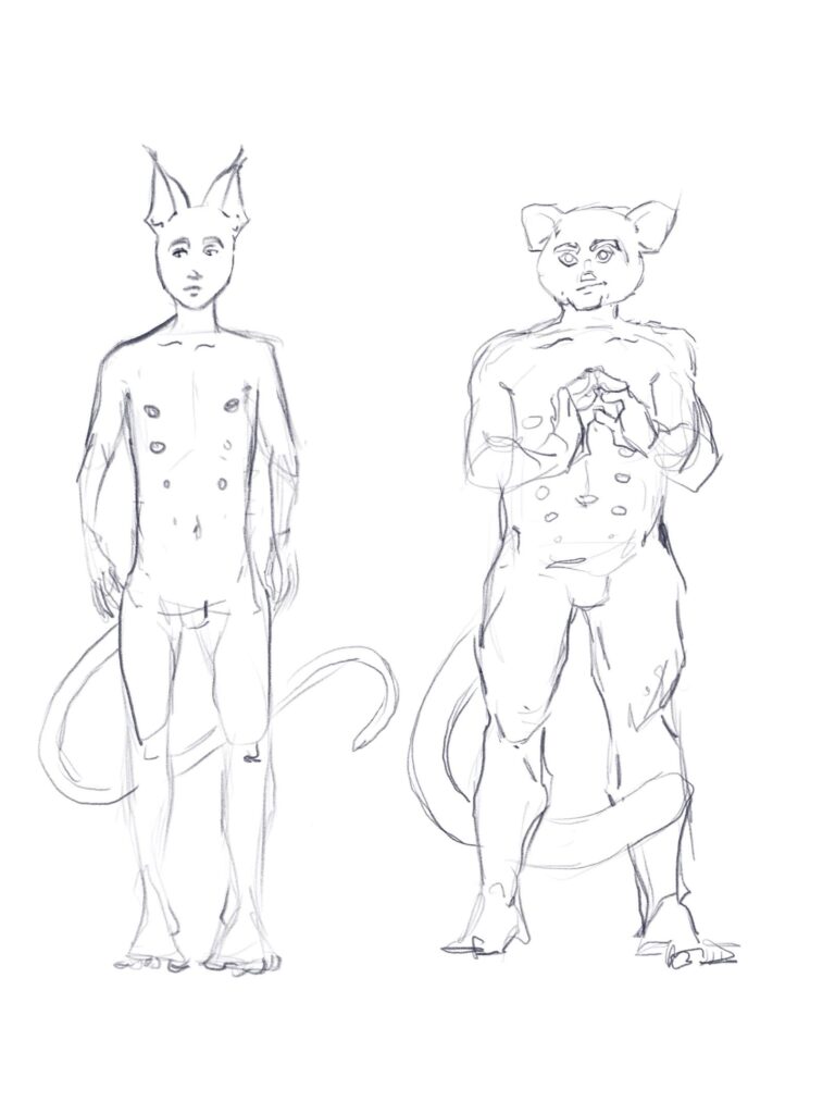 Character Designs have not been locked in yet either, but there are some sculptural studies and sketches that we’ve started with. Who knows if they stick or not.